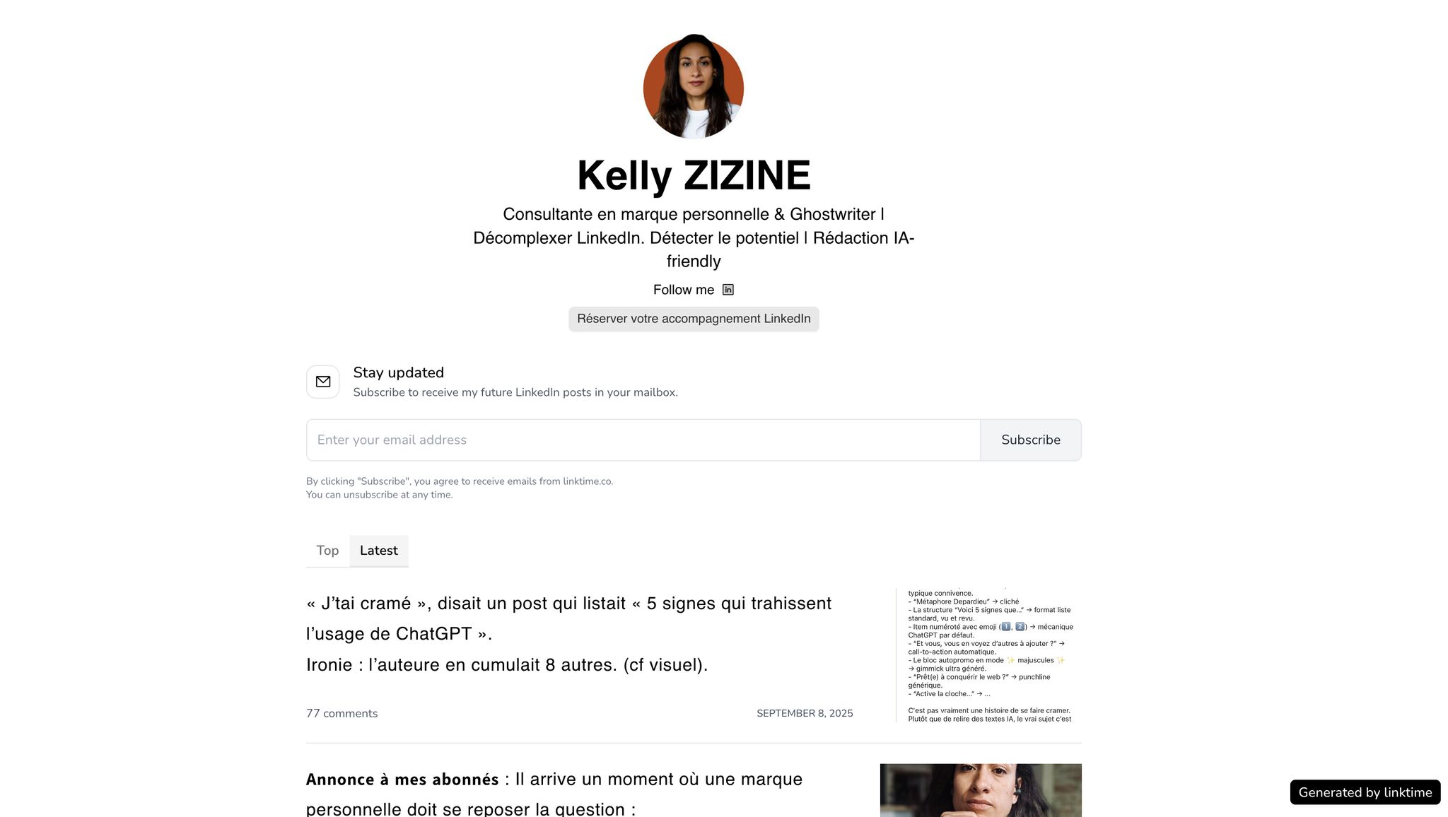 J’ai fait un choix : je ne crée du contenu que sur LinkedIn. Pas de site web. Et pourtant, à partir d’aujourd’hui, mes posts seront aussi référencés sur Google et reçus par mail. Jusqu’ici, je vous parlais de linktime dans ma newsletter Idée Reçue, parce que c’est la solution que j’utilise et recommande pour : - Identifier le meilleur moment pour publier selon mon audience connectée. - Créer des listes ciblées de profils à suivre et à commenter exclusivement. - Vérifier la lisibilité de mes posts avant publication. Aujourd’hui, l’équipe annonce une nouvelle fonctionnalité : Le blog Linktime. Désormais : ▪️ Mes posts sont indexés automatiquement sur Google → visibilité SEO ▪️ Ils ne disparaissent plus dans le flux → un portfolio toujours à jour ▪️ Mon audience peut s’abonner et les recevoir par mail → comme une newsletter Autrement dit : 1 contenu, 3 répercussions. De quoi rester concentrée et multiplier ma présence : LinkedIn pour la spontanéité sociale Google pour la visibilité durable Mail pour mes lecteurs assidus Derrière ce projet, il y a Vianney et François Lecroart, ex-fondateurs de Lemlist. Ils prouvent qu’après l’ère de la prospection automatisée, l’enjeu est maintenant dans le développement de relations organiques. Je suis très fière de partager cette nouveauté en tant qu’ambassadrice France. Parce que les valeurs de cette équipe croisent les miennes pour développer l’outil qui aide à construire de vraies relations sur LinkedIn. Et désormais, en dehors. 🔗 Pour tester 1 mois offert, créez votre compte depuis ce lien d’affiliation (non commissionné) : → https://lnkd.in/dz6wRRNY Elodie, office manager, s’assurera de prolonger votre période d’essai de 7 à 30 jours.